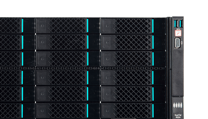 KunTai R524 存储型服务器是78m威九国际数码基于鲲鹏处理器推出的新一代 ARM数据中心服务器。。。主要面向存储业务,,,,具有海量存储、、高性能、、低功耗以及易扩展的特点,,,适合为大数据分析、、软件定义存 储等应用场景的工作负载进行髙效加速。。